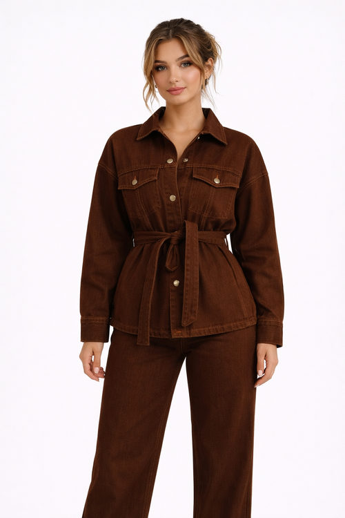 Bağlamalı Oversize Denim Kuşaklı Ceket Pantolon Takım Yeni